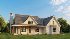 This cozy yet stylish farmhouse design offers a perfect balance of efficiency, comfort, and timeless character. With a thoughtfully planned layout, the home delivers open-flow living spaces ideal for everyday life and entertaining, while keeping private bedroom and bath areas compact and functional. It’s a smart choice for small families or couples who want farmhouse charm and modern livability without unnecessary square footage. Clean lines, classic styling, and a well-proportioned footprint make this plan a welcoming, no-fuss home that feels spacious, warm, and practical for today’s lifestyle.